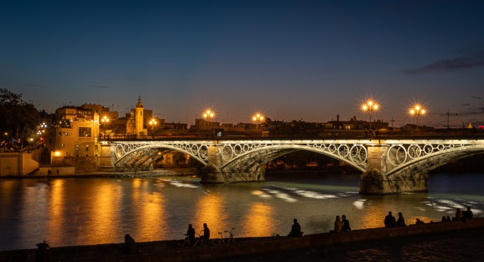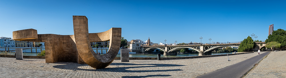 Anschließend überquere ich die Puente de Triana und riskiere vom anderen Ufer aus ein paar ausgiebige Blicke auf die sehenswerte Brücke und das Kunstwerk vor meinen Augen.