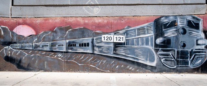 Während ich versonnen aus dem Fenster schaue, komme ich – nicht zum ersten Mal – in den Genuss einer alten Tradition. Schon mal was von Mooning of the AMTRAK gehört? Nein? Dann schaut euch unbedingt dieses Video an. Was darin erklärt wird, hat sich über die Jahre verselbstständigt und wird an vielen Strecken, auch entlang des Colorado River, und auch nicht mehr nur am zweiten Samstag im Juli, praktiziert.