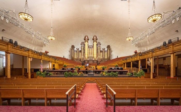 … und der Tabernakel, das 5.000 Menschen Platz bietende Akustikwunder, können von innen und außen angeschaut werden. Sehr beeindruckend!