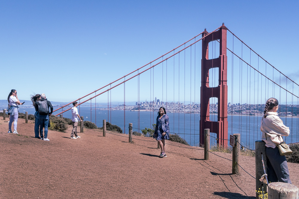 … um hoch zum besten Aussichtspunkt, dem Battery Spencer View Point zu laufen. Dort erfreue ich mich nicht nur an der fantastischen Aussicht über die jetzt nebelfreie Bucht, sondern nutze die Szenerie auch, um meine Janus-Galerie zu erweitern.