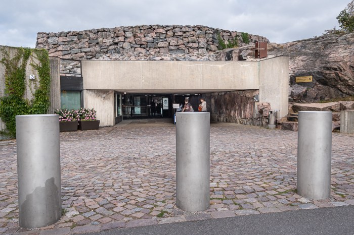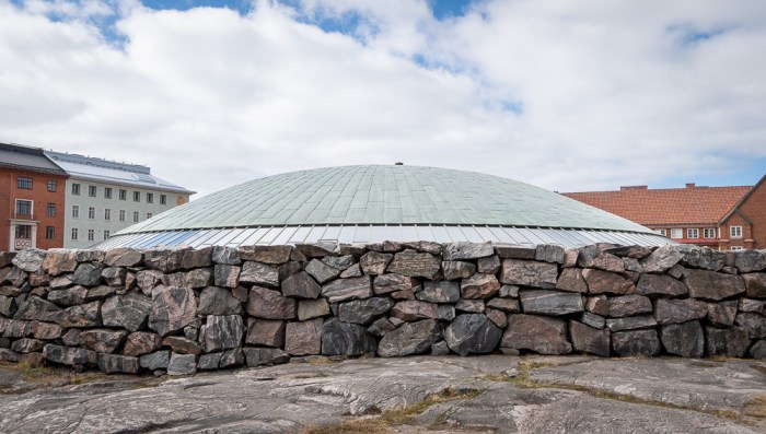 Nur wenige hundert Meter davon entfernt liegt die berühmte Tempelkirche, uns eher bekannt als Felsenkirche. Die Finnen hingegen nennen sie Temppeliaukion kirkho. Mit ein wenig Übung geht euch das bestimmt genauso schnell über die Lippen wie uns. Die von außen kaum sichtbare Kirche wurde auf spektakuläre Weise in den finnischen Granit gesprengt.