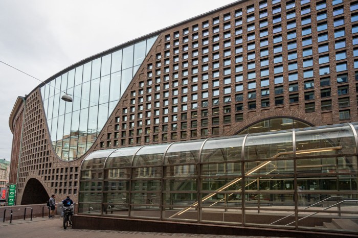 Die neue nordische Architektur gefällt mir auch gut, aber das gibt es auch so ein paar Brocken … zum Beispiel dieser überdimensionale Roller-Ständer da. Meine Güte. Aber so etwas habe ich in Oslo auch gesehen. Stichwort Rathaus.