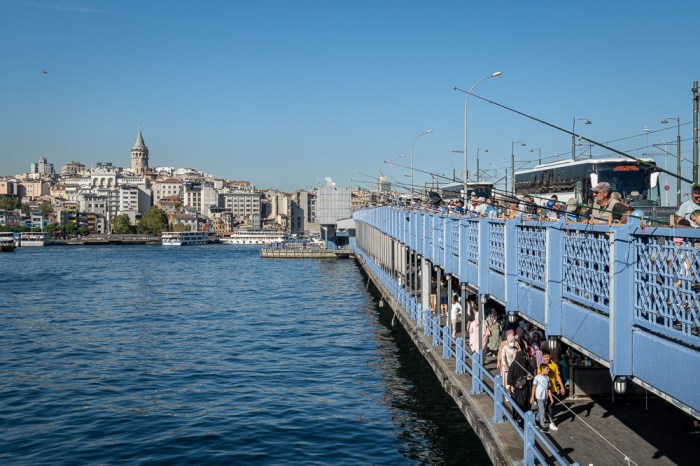 Diese zweistöckige Brücke ist viel mehr als nur ein Hilfsmittel, um trockenen Fußes von einem Ufer zum anderen zu gelangen. Hier wird gefahren, gelaufen, (an)gequatscht, geschaut, geangelt sowie Shops und Restaurants besucht. Für die Einheimischen scheint es auch eine Art Erweiterung ihres Wohnzimmers zu sein. Die Galatabrücke als gute Stube Istanbuls.
