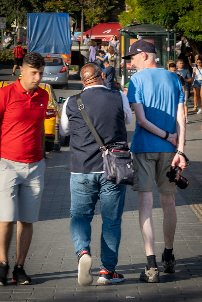 Die Gässchen sind schmal und bestehen zum größten Teil aus Kopfsteinpflaster. Es gibt sowohl hier aus auch weiter unten an den großen Verkehrsachsen kaum Wege oder Überwege für Fußgänger. Auch Ampeln sind hier eher rar gesät. Diese Stadt gehört den Autofahrern, die sich auch noch durch die engsten Gassen zwängen und Fußgänger gnadenlos an den Rand drängen oder weghupen. Letzteres passiert Stefan sogar mitten auf einem der raren Bürgersteige, den ein ungeduldiger Gaspedalrowdy für ein Überholmanöver zu nutzen gedenkt.