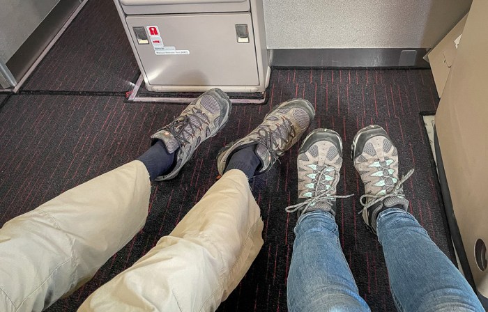 … mit einem Platz am Notausgang mit viel Beinfreiheit gesegnet.