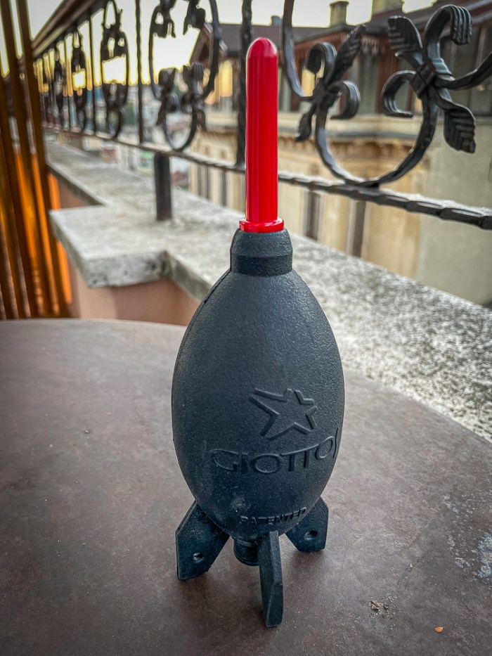 Hallo wanderlustig, das Raketenteil ist ein Luftbläser. Da wir häufig die Objektive wechseln (müssen), kann Staub auf die Rückseite des Objektivs oder auf den Sensor der Kamera kommen. Dies würde dann auf dem Foto sichtbar und viele Eingriffe in Lightroom und/oder Photohop bedürfen, diese zu beseitigen. Also „pusten“ wir lieber ab und zu. ;-).