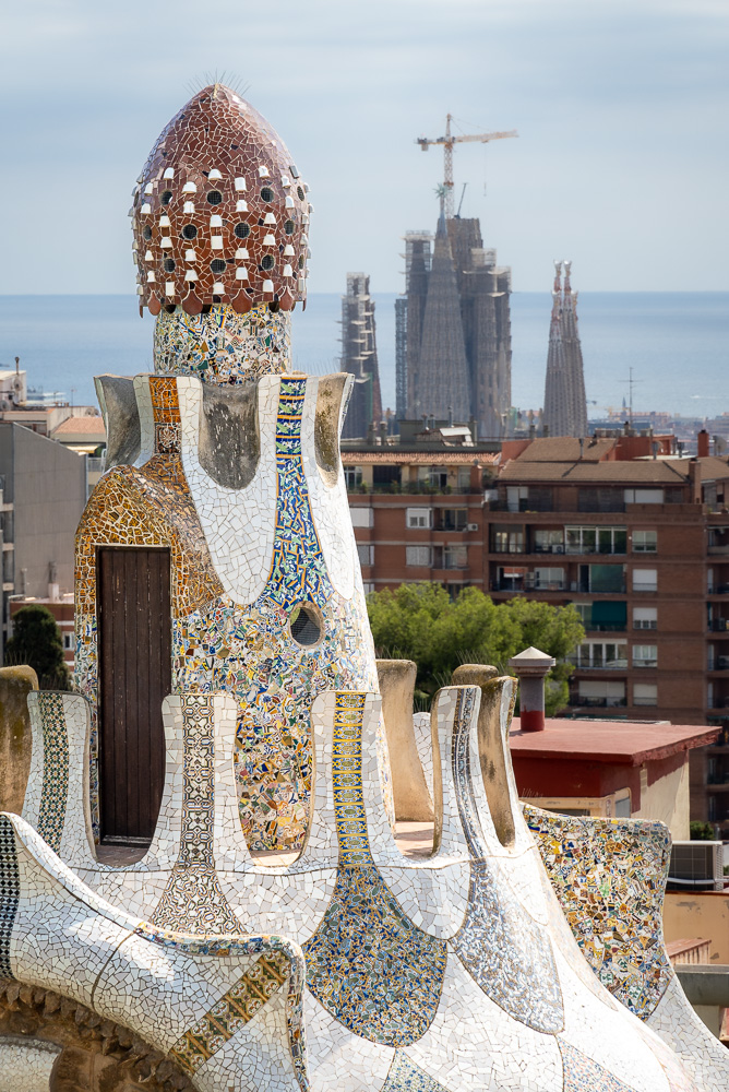 Wir fahren mit der U-Bahn ein Stückchen Richtung Park und keulen die restliche Wegstrecke zu Fuß den Berg hinauf. Oben angekommen, werden wir für die Mühen des Aufstiegs mit der überbordenden Kreativität des genialen Antoni Gaudí belohnt.