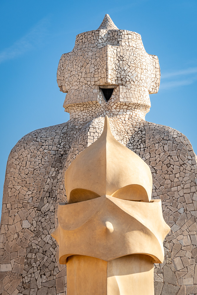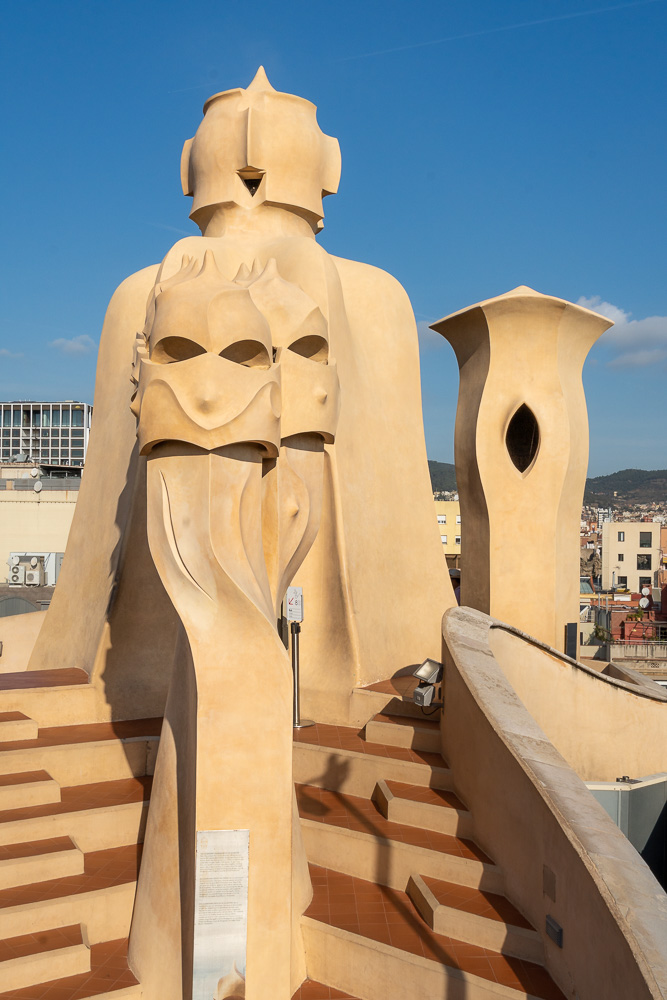 Gaudís Casa Milà ist für uns zu Fuß erreichbar, denn wir wohnen um die Ecke in der Avenida Diagonal. Gestern haben wir uns Tickets für 9:30 Uhr gesichert. Wir sind früher da und werden auch früher reingelassen. So eng sieht man es hier nicht mit diesen Zeitfenstern. Hauptsache, die Besucherschar wird halbwegs über den Tag verteilt.