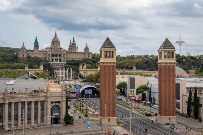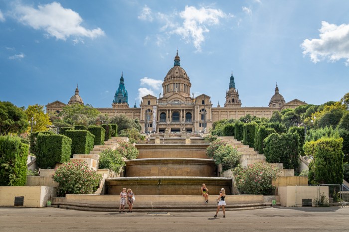 Auf dem Areal oberhalb der Plaza España buhlen zwei Hauptdarsteller um die Gunst und Aufmerksamkeit der Besucher: die Brunnenanlage Font Màgica und der Palau Nacional als Sitz des Museu Nacional d’Art de Catalunya, kurz MNAC genannt.