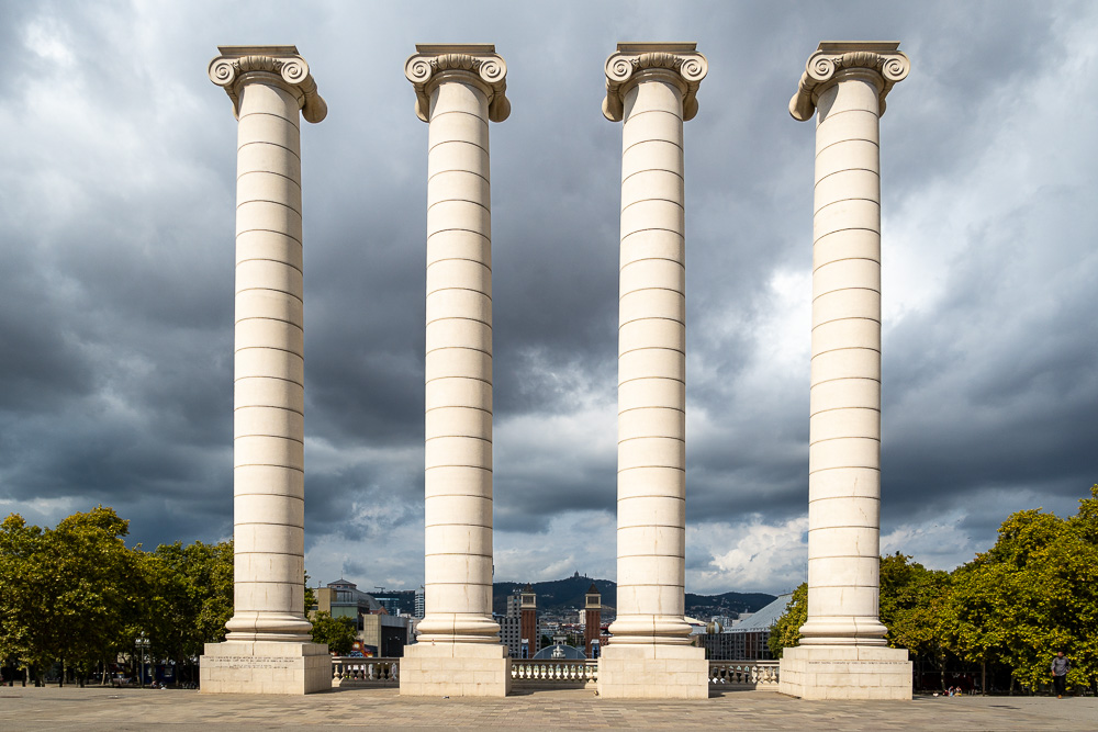 Nun wird es voller. Nichts wie raus mit uns. Wir nehmen die U-Bahn und steigen wenig später in den Funicular um, der uns hoch hinauf zu einem von Barcelonas Hausbergen, dem Montjuïc, bringt. Als Barcelona 1929 zum zweiten Mal Gastgeberin einer Weltausstellung wurde, wurde der Montjuïc urbanisiert. Seitdem punktet er nicht nur mit spektakulären Aussichten auf die Stadt, sondern auch mit weitläufigen Parks, einigen namhaften Museen und Veranstaltungsorten.