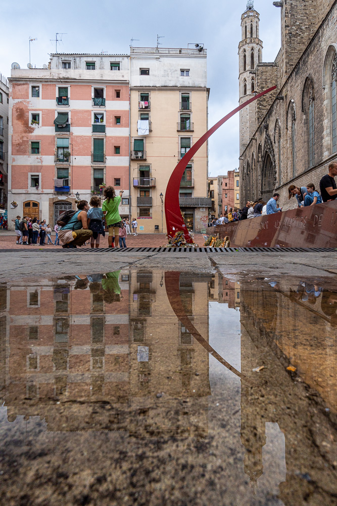 Nach dem exquisiten Kunstgenuss lassen wir uns ziellos durch die Sträßchen des schönen, aber an diesem Samstag vor allem vollen El Born treiben. Die Gegend liegt derzeit voll im Trend. Die engen Gassen und lauschigen Plätze sind gespickt mit Designerboutiquen, Restaurants, Bars und Cafés. Auch Architektur-, Kunst- und Pfützenfans kommen auf ihre Kosten.