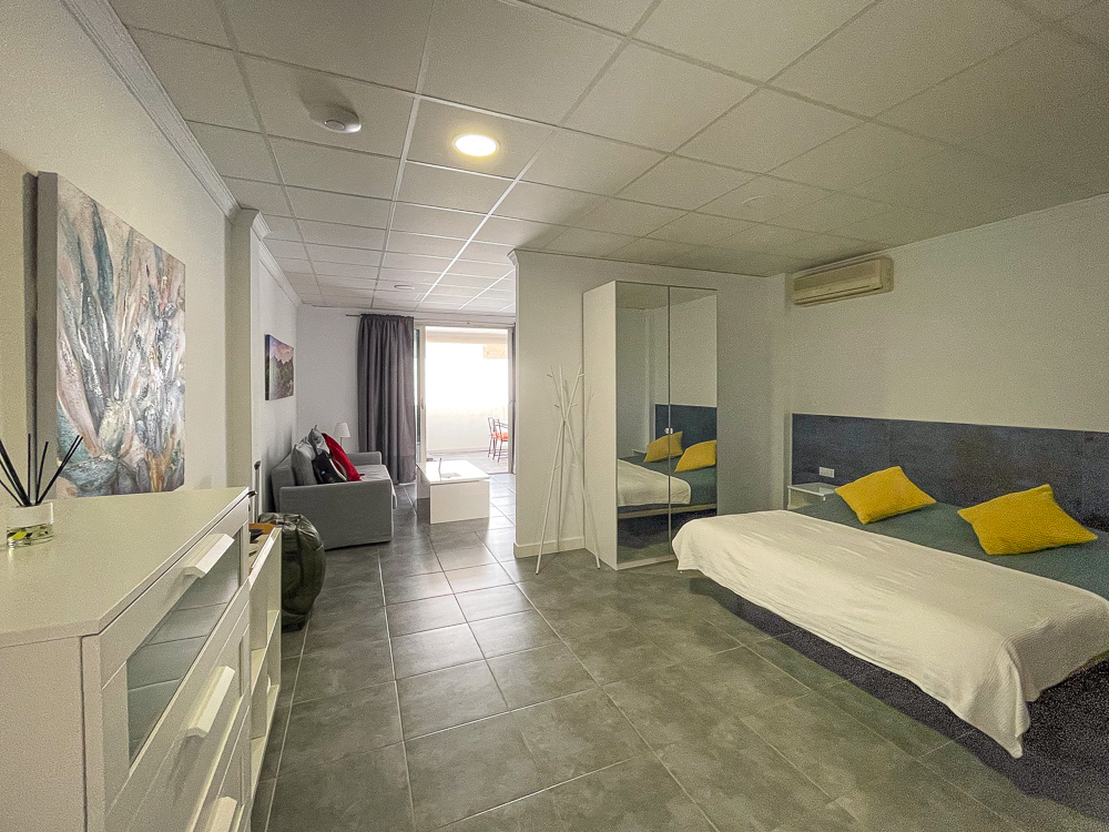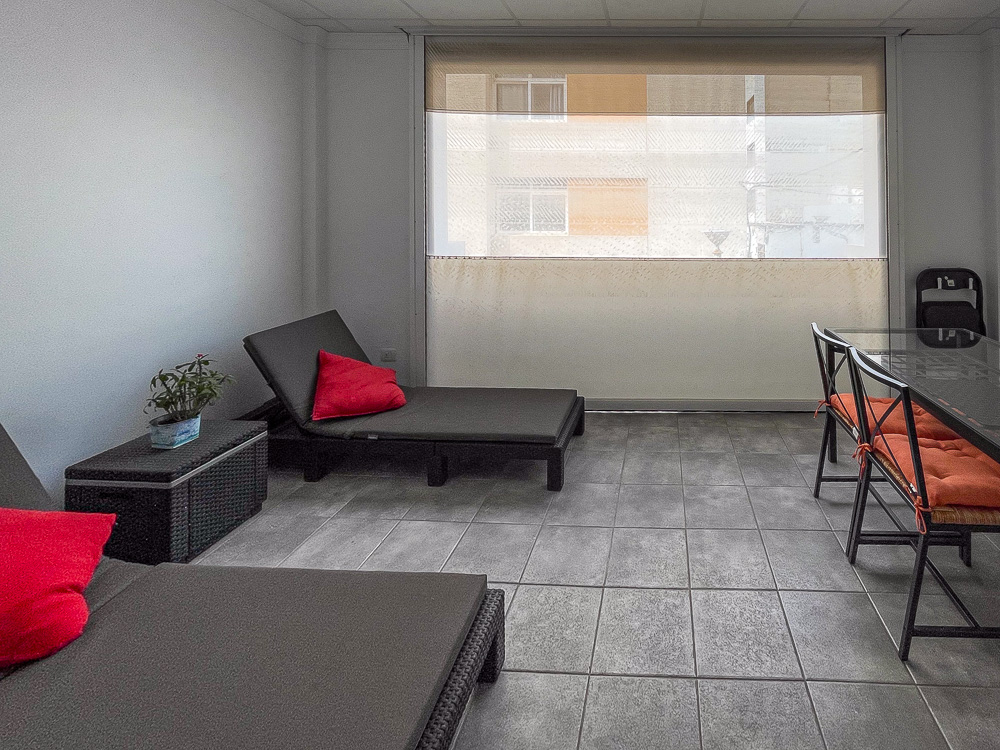 Die Wohnung gefällt mir. Zwar habe ich nun keinen Meerblick mehr, aber als Ausgleich dazu eine schöne Bude mit einer Loggia, die man öffnen und somit zur überdachten Terrasse umfunktionieren kann. Auch liegt die Wohnung in einer deutlich ruhigeren Straße als das Hotel.