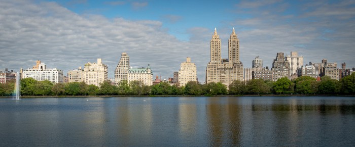Direkt gegenüber liegt einer der vielen Eingänge zum Central Park, der zu dieser Uhrzeit vornehmlich von Joggern und Hundebesitzern besucht wird – und von Touristen mit seniler Bettflucht. Wir betrachten aus der Ferne die Skyline der Upper West Side jenseits des großen Teiches, …