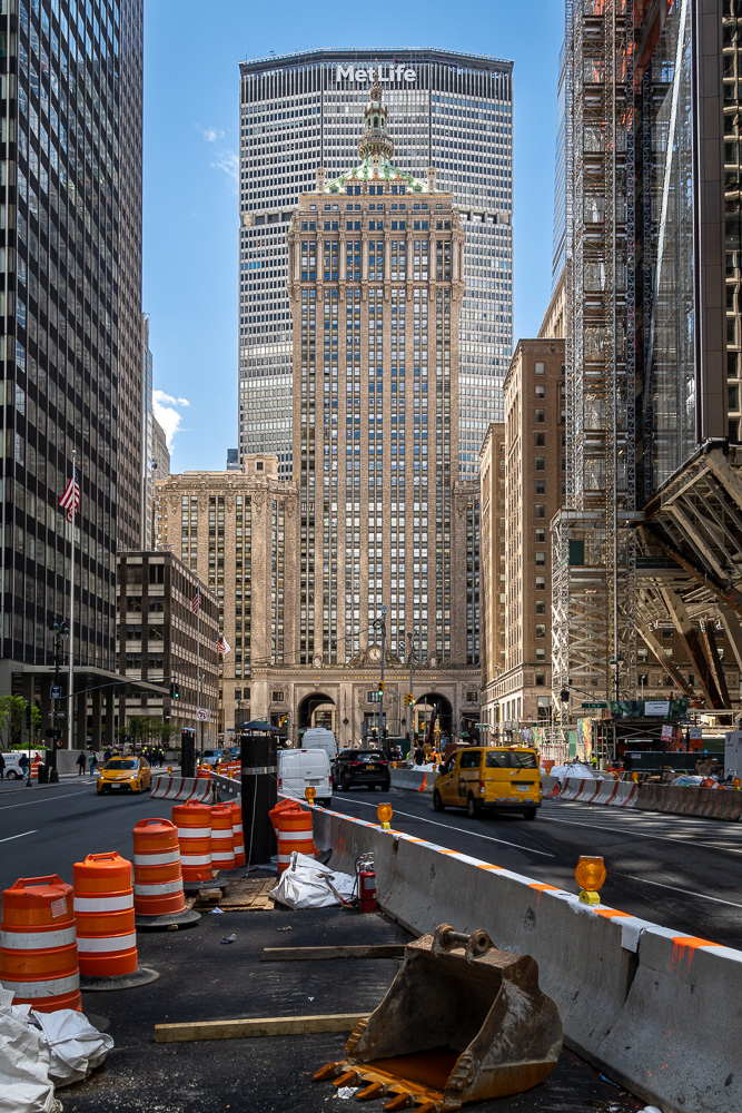 Nun können wir uns wieder auf das konzentrieren, was sich um uns herum sonst noch so abspielt. Es ist lunch time, die Food Trucks haben regen Zulauf. Auf dem Mittelstreifen der Park Avenue hat es sich eine Baustelle gemütlich gemacht, die einen durchaus willkommenen Vordergrund für ein paar Fotos darstellt.