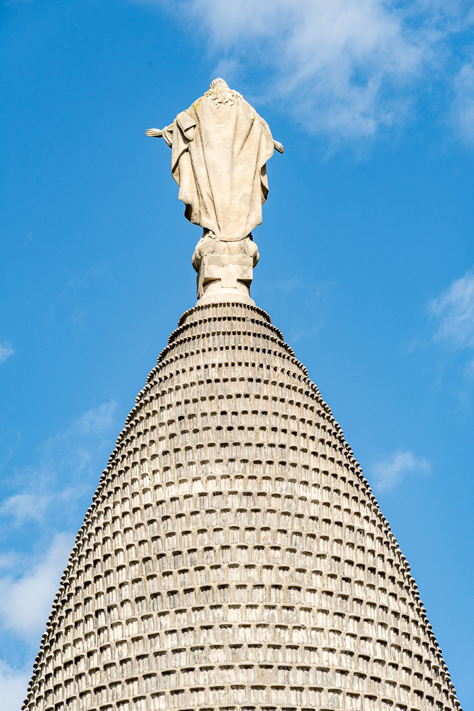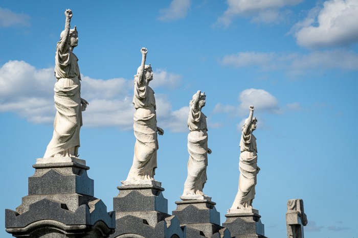 Da der Nachmittag mittlerweile zwar schon fortgeschritten, aber noch lange nicht zu Ende ist, peilen wir noch ein zweites Ziel an, das unterschiedlicher kaum sein könnte. Mittels einer Kombination aus U-Bahn und Bus fahren wir zum Calvary Cemetery im Stadtbezirk Queens. Dieser römisch-katholische Friedhof ist einer der ältesten des Landes und hat mit rund drei Millionen die höchste Anzahl an Beerdigten aller Friedhöfe in den gesamten USA. Doch das ist nicht der Grund, weswegen wir die etwas umständliche Anreise hierher in Kauf genommen haben.