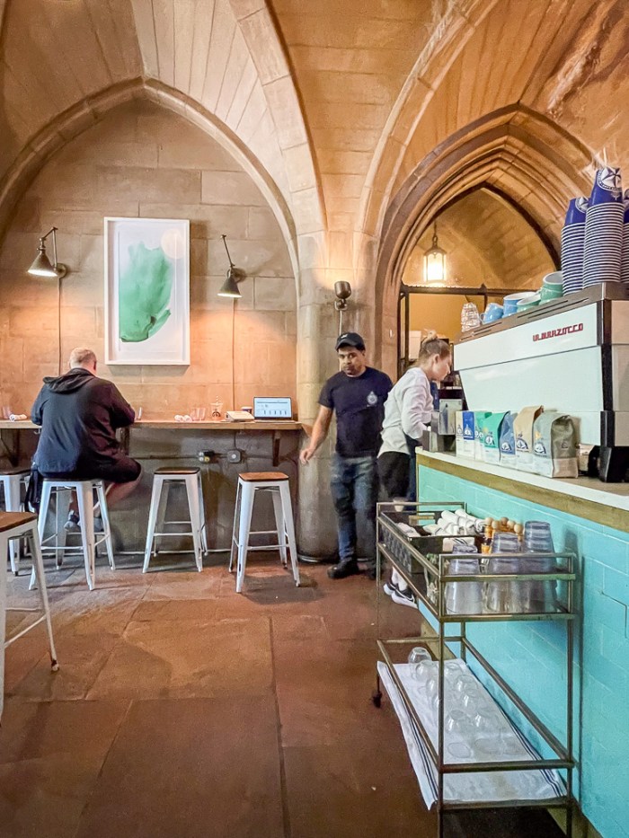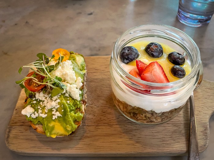 Als auch ich aufgewacht und startklar bin, steige ich beschwingt in die U-Bahn, die mich zur 86th Street bringt. Denn heute ist mir nach einem Auswärts-Frühstück. Oberhalb vom Guggenheim Museum gibt es ein tolles Café im Nebenraum einer Kirche: das Bluestone Lane.
