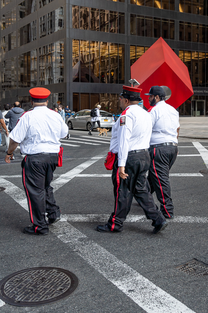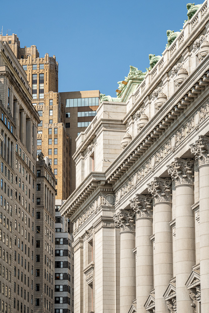 Nach einem Mittagessen nehmen wir die U-Bahn nach Downtown Manhattan. Unseren eigentlichen Plan, uns mit der Staten Island Ferry aufs Wasser zu wagen, verschieben wir spontan auf morgen. Zum einen ist an diesem fortgeschrittenen Nachmittag am Pier gerade sehr viel los. Und zum anderen sind die Lichtverhältnisse wegen des fortschreitenden Gegenlichts ziemlich ungünstig. Tja, wir wollten auch eigentlich deutlich früher hier sein! Aber erst habe ich mich im Café verquatscht, und dann konnten wir uns von Roosevelt Island nur schwer und spät lösen. Zum Glück ist morgen auch noch ein Tag.