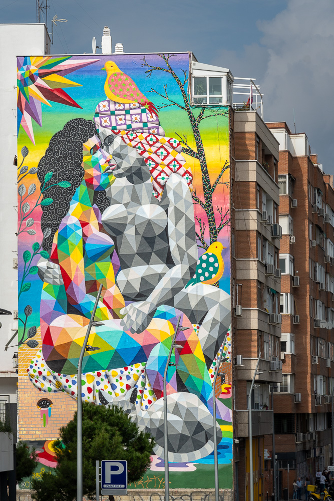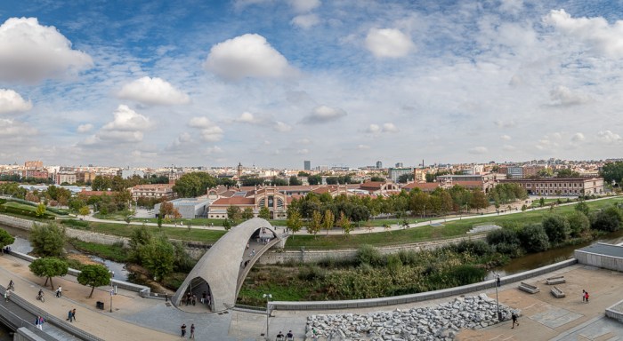 Auch wenn es heute wieder drückend warm ist, sind wir noch nicht ausgelastet. Und so entscheiden wir uns dafür, das nächste Ziel zu Fuß anzupeilen. Die Strecke bis zum Parque de Enrique Tierno Galván ist zwar nicht sehr lang, zieht sich aber etwas hin. Der Himmel indes zieht sich eher zu. Sogar der eine oder andere zarte Regentropfen geht auf uns nieder. Doch die Dusche bleibt zum Glück mehr als unergiebig.
