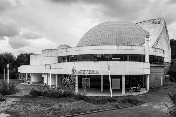 Weiter geht’s den Hügel hinauf, über den sich der weitläufige Park erstreckt. Dort hat sich das Planetarium (siehe auch heutiges Titelbild) die Pole Position unter den Nagel gerissen. Im Gegensatz zum Kino ist es jedoch noch im aktiven Betrieb.
