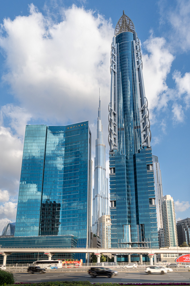 Anschließend schlendern wir die parallel zur Zayed Road verlaufende Verkehrsachse hoch bis zu unserer U-Bahnstation Dubai Mall. Der Weg dorthin ist natürlich wieder gepflastert mit Fotomotiven, von denen ich hier gerne eine kleine Auswahl zeige.
