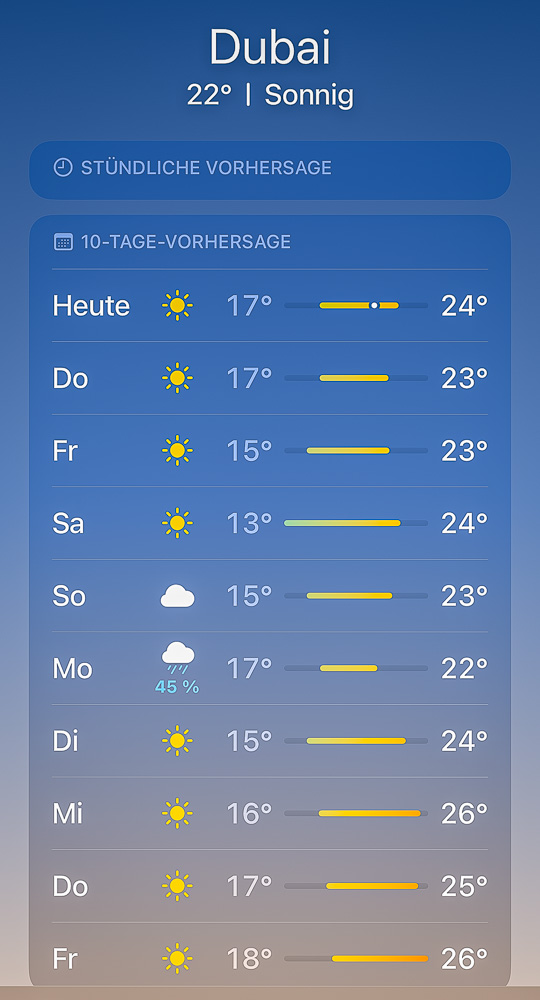 Das Wetter wird uns jedenfalls hold sein, verspricht meine App.