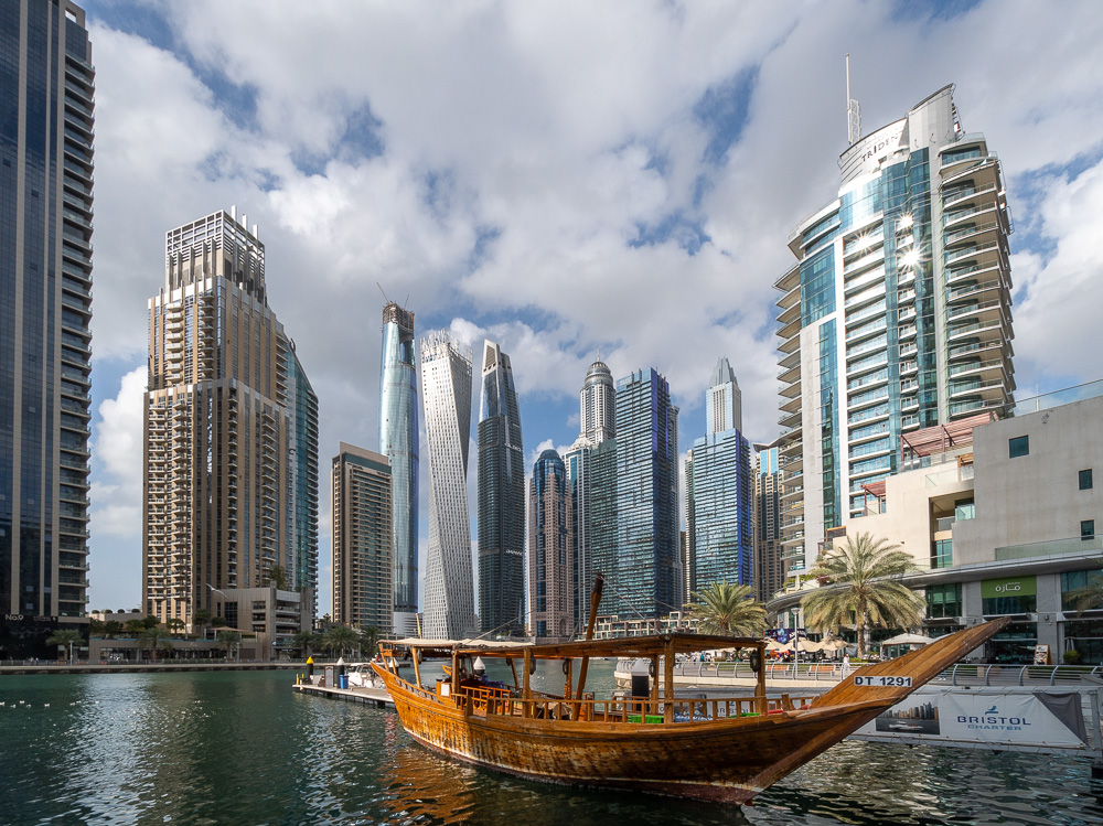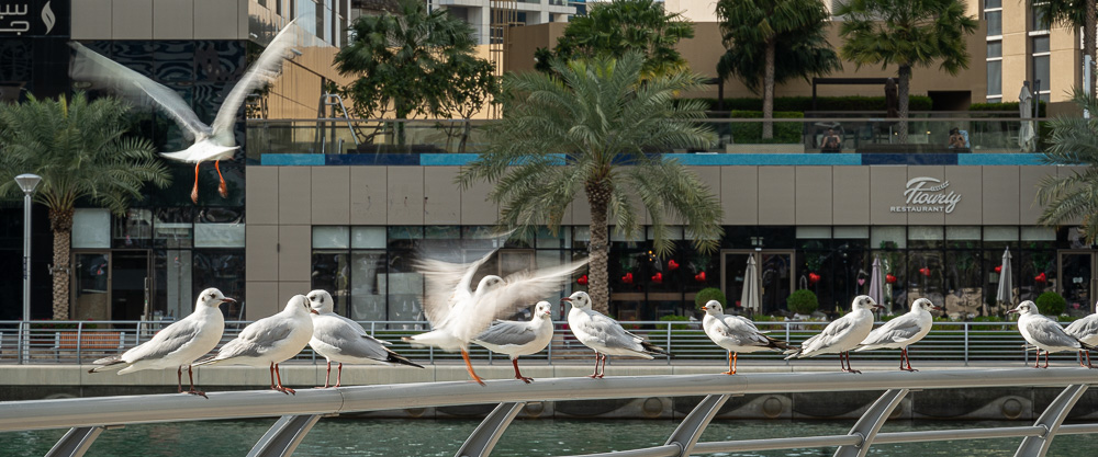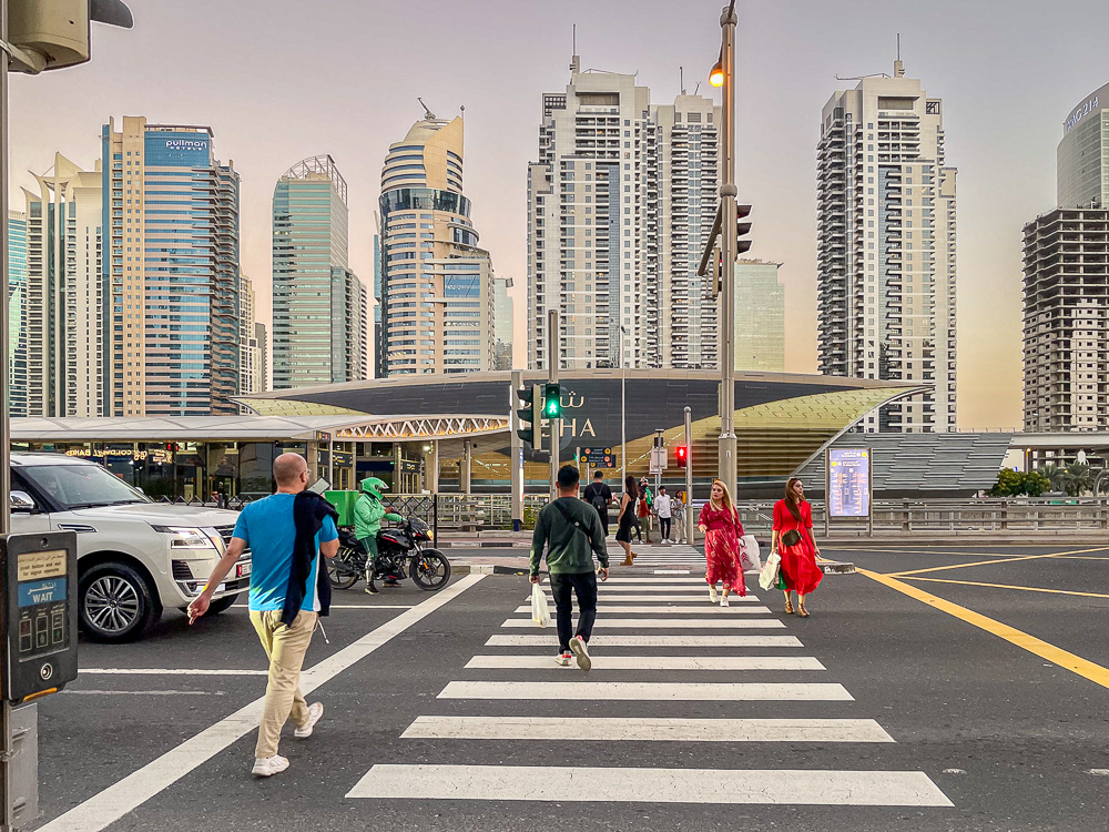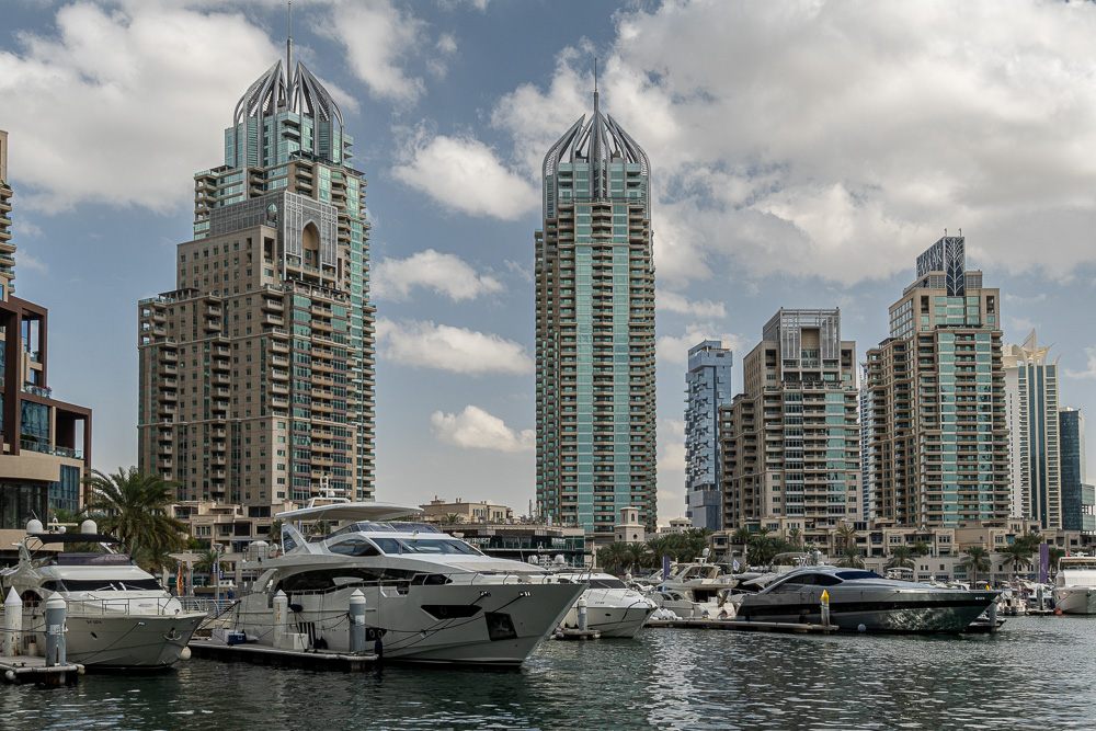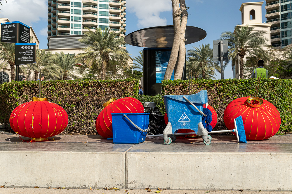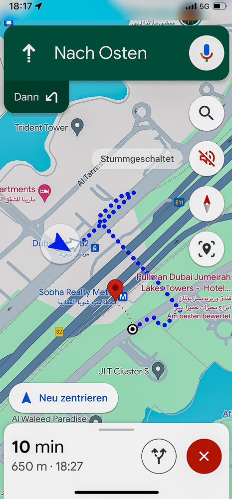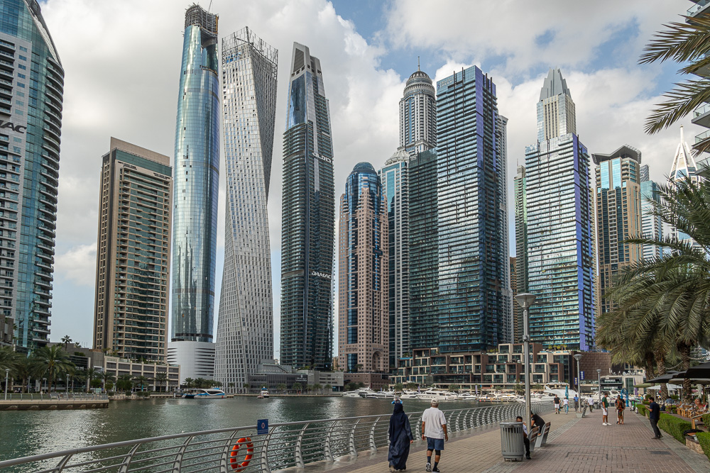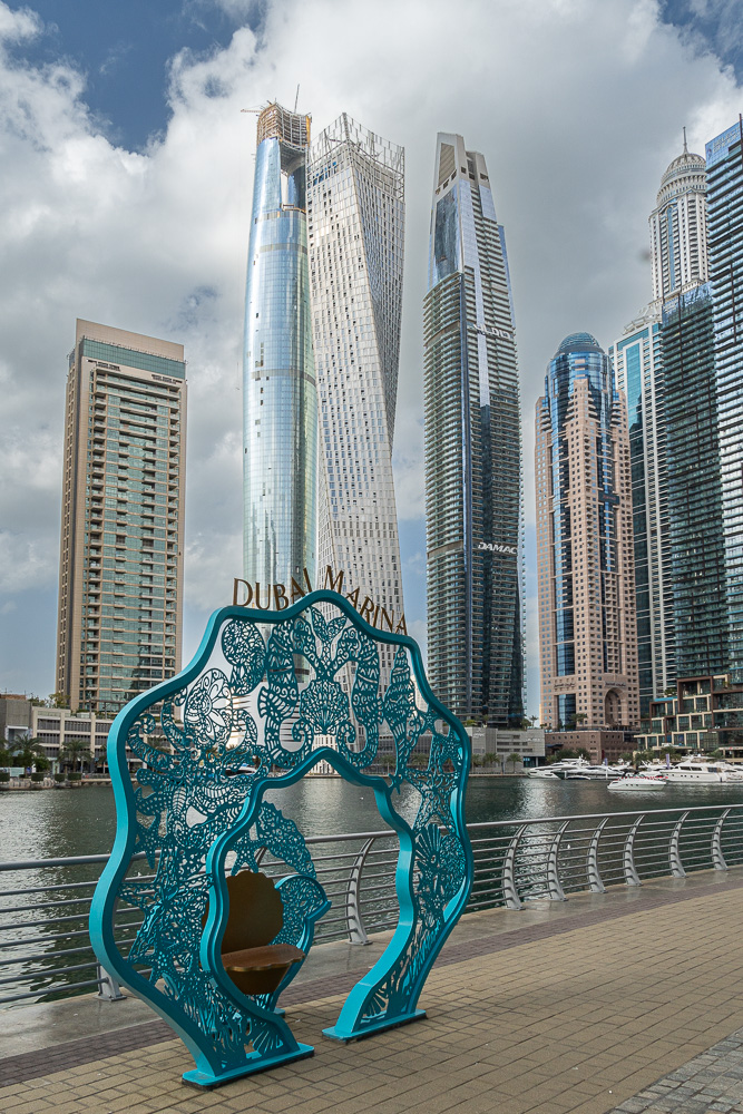 Per Monorail und kurzer Tramfahrt nähern wir uns der Dubai Marina. Wir steigen eine Station früher aus, weil uns dort noch ein paar Fotomotive locken.