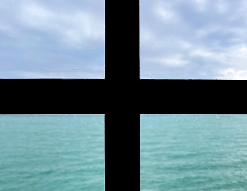 Hinein mit mir! Die lange Schlange vor dem Eingang, begünstigt durch das wechselhafte Wetter, verspricht nichts Gutes. Doch es geht überraschend flott, und drinnen verteilt sich die Menge ganz gut. Die Ausstellung ist toll, die dem Meer zugewandte große Terrasse ebenso.
