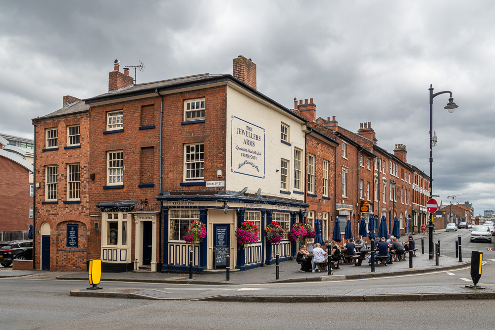 Nach einem kurzweiligen Fußweg erreichen wir das Jewellery Quarter. Das Viertel ist seit etwa 250 Jahren das Zentrum der britischen Schmuckindustrie. Bis heute stammen rund 40% aller britischen Schmuckstücke von hier. Dank der vielen auch von außen sehr ansehnlichen Handwerksläden und Museen, der spannenden Kunstszene und vielfältigen Gastronomie zählt das Jewellery Quarter zu den attraktivsten Vierteln Birminghams. Das können wir gut nachvollziehen.