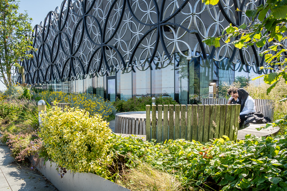 Da wir es gestern wegen der frühen Schließzeit nur bis zur Terrasse im dritten Obergeschoss geschafft hatten, nehmen wir heute einen zweiten Anlauf für den Rest. Der Secret Garden im siebten Stockwerk ist richtig toll! Er entpuppt sich als ruhige, schattige Oase mit formidabler Aussicht.