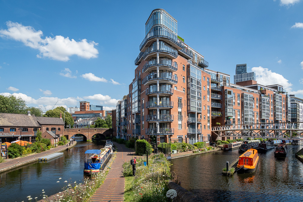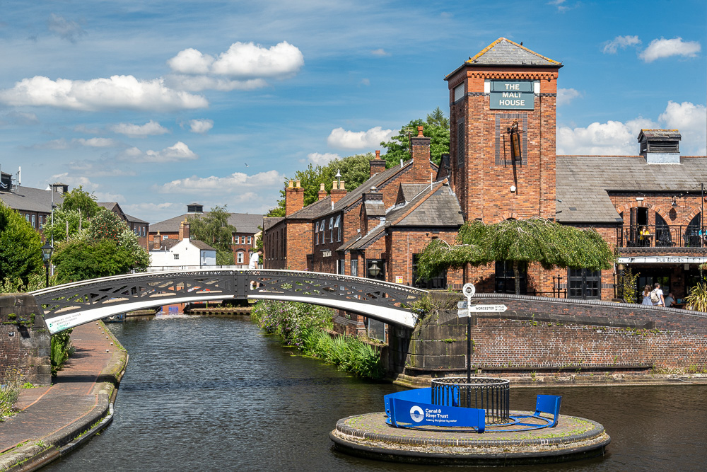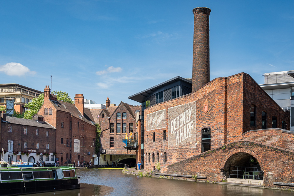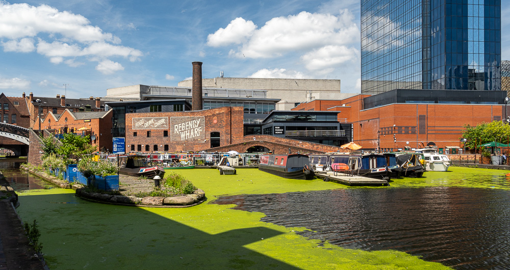 Von der Bibliothek aus trennen uns nur noch wenige Meter von einem Teil der Stadt, der kontrastreicher nicht sein könnte. Sind wir hier wirklich noch in Birmingham? Sieht eher aus wie auf dem Lande und kommt auch total gemütlich daher! Westlich der Innenstadt beginnt mit dem Gas Bassin die grüne Oase Birminghams, die sich weitläufig entlang der ehemaligen Transportkanäle erstreckt.