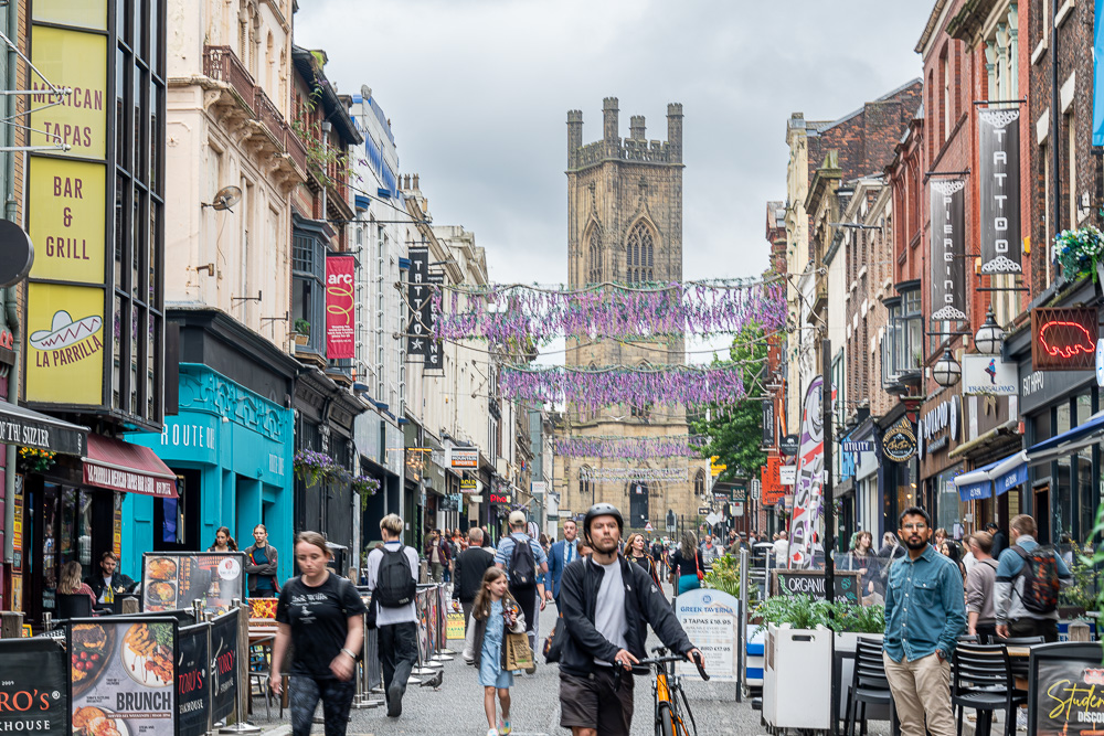 In dem ehemaligen Industriegebiet Baltic Triangle, in das ich uns jetzt führe, ist auch jede Menge Street Art zu sehen, die glücklicherweise nicht nur den Ex-Trainer des FC Liverpool zeigt. In den alten Lagerhäusern rund um die Jamaica Street sind heute zahlreiche Start-Ups angesiedelt. Darüber hinaus haben auch ein Kunstzentrum, ein paar Restaurants, Cafés und Bars, ein Garten für Outdoor-Events sowie ein Skate-Park ihren Platz gefunden.