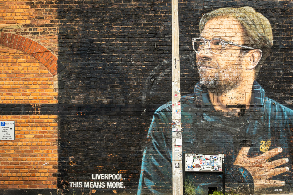 Natürlich ist es längst zu spät für Live-Begegnungen auf dem Platz. Doch Jürgen Klopp genießt wohl auf immer und ewig Kultstatus in dieser Stadt und auch in den Herzen vieler ihrer Bewohner. So haben sich über die Jahre zahlreiche Murals in der ganzen Stadt gehäuft, die dem so verehrten deutschen Trainer huldigen.