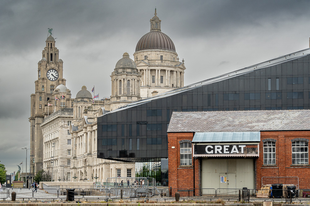 Am recht breiten Mersey River riecht und spürt man schon fast das Meer. Liverpool ist eine Hafenstadt. Das Setting erinnert mich ein wenig an Hamburg. Später wird uns ein zarter, aber beharrlicher Nieselregen wieder zurück ins trockene Hotelzimmer treiben. Doch bis dahin bleibt uns genügend Zeit, um Stadtwitterung aufzunehmen.