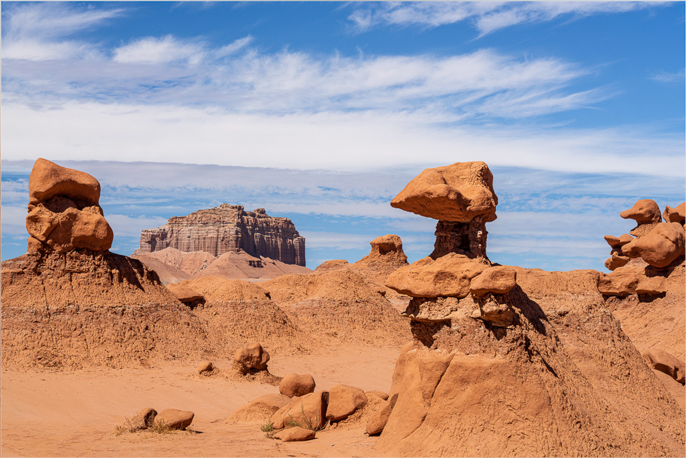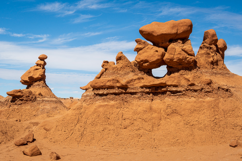 Dann zieht es uns weiter gen Norden. Auf dem Weg zu unserem nächsten Standort unternehmen wir einen Abstecher zum Goblin Valley. 20 Kilometer Umweg (pro Richtung), die sich mehr als lohnen. Erstaunlicherweise gilt das entlegene Tal immer noch als Geheimtipp. Entsprechend hält sich der Andrang an Touristen sehr in Grenzen.