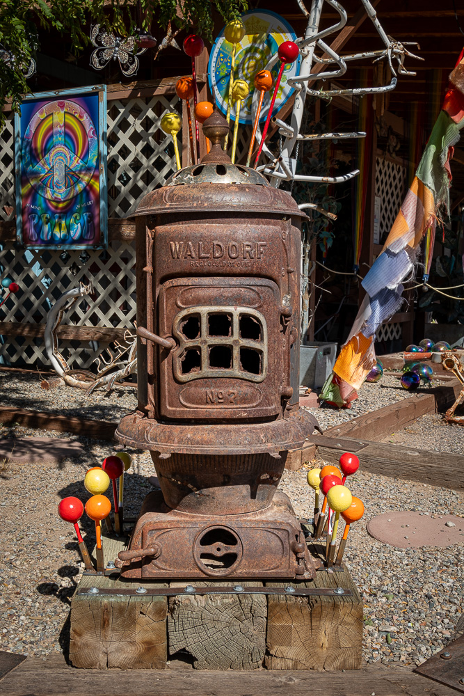 Bald passieren wir das kleine Städtchen Hanksville. Neben der üblichen Grundversorgung hat es eine Attraktion der eher ungewöhnlichen Art auf Lager. Willkommen in Carl’s Critter Garden! Hier hat ein lokaler Künstler aus Metallschrott, Glas und weiteren ausrangierten Materialien skurrile Skulpturen geschaffen. Echte Kreaturen eben! Der Name ist Programm.