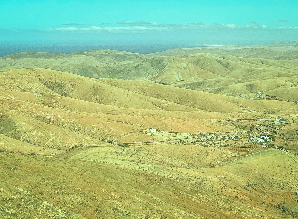 … Kreuzfahrtschiff weit und breit! Fast fehlt mir der Anblick. Aber wirklich nur fast 😅. Nach dem Frühstück in meinem temporären Stammcafé Huga nehme ich die Buslinie 2, die mich nach Betancuria bringen wird. Während der Fahrt sehe ich heute nicht nur die obligatorischen Ziegen, sondern auch Esel und Kamele.