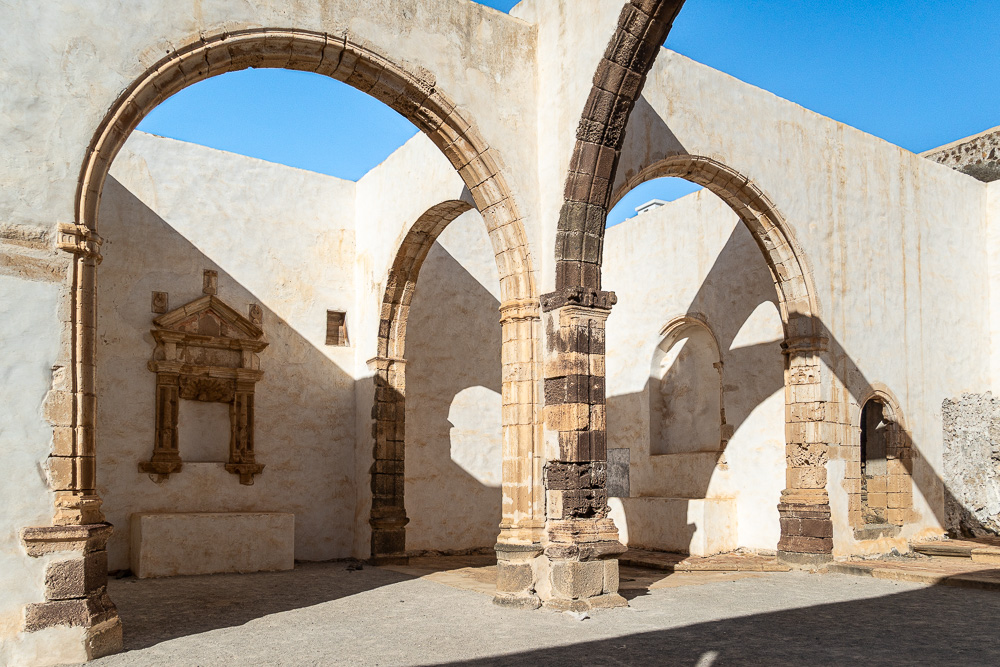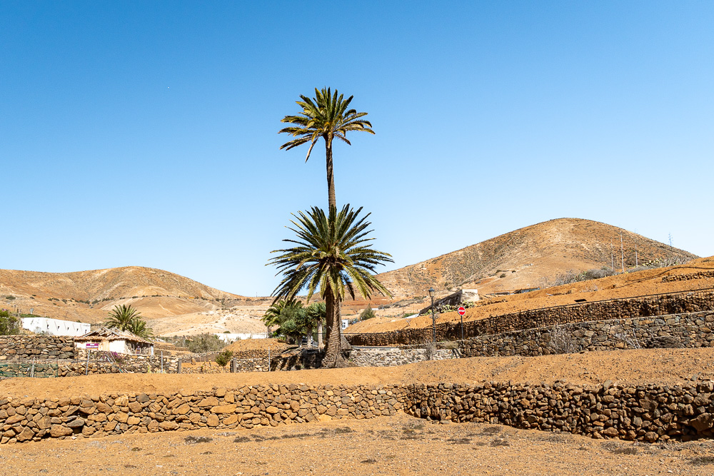 Nach diesem Anblick geht’s hinab ins nächste Tal. Das im Landesinneren gelegene 700 Seelen-Dörfchen Betancuria ist nach einer Stunde erreicht. Das Örtchen ist geschichtsträchtig und wunderschön mit seinen Kirchen und den liebevoll restaurierten Häusern. Die Lage tut ihres dazu, den Ort zu einem beliebten Tagesziel zu machen.