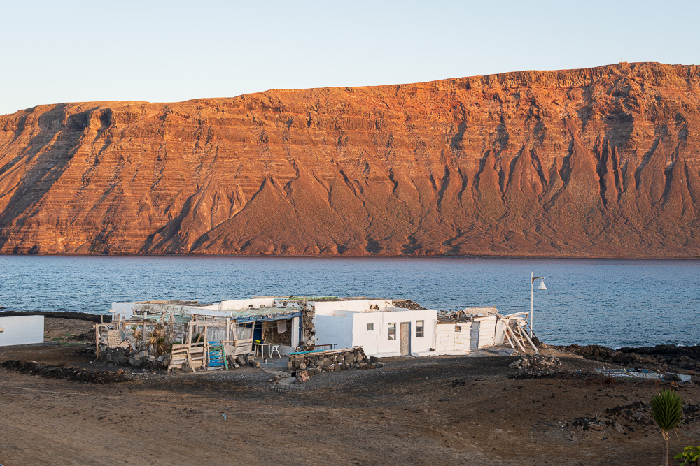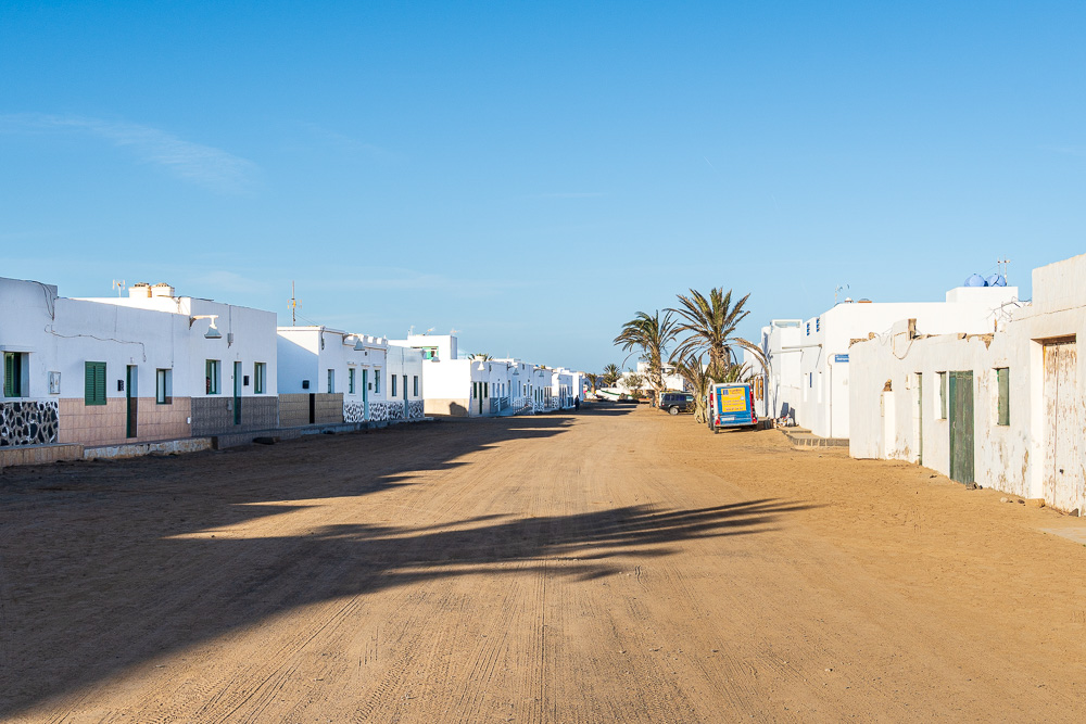 Am späten Nachmittag wuchte ich meinen Astralkörper von der Liege herunter – der Kater freut sich! – und drehe noch eine kleine Runde durchs Örtchen bei bestem Nachmittagslicht. Jetzt ist der perfekte Zeitpunkt dafür. Denn nun, da die letzte Fähre La Graciosa Richtung Lanzarote verlassen hat, kehrt schlagartig Ruhe ein auf der Insel, die überwiegend von Tagesgästen besucht wird. Den gleichen Effekt erlebe ich auch vormittags. Denn vor 10:30 Uhr lassen sich kaum Besucher von „drüben“ blicken.