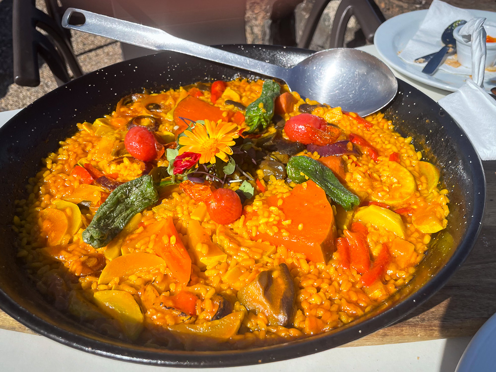 Am Fähranleger angekommen, registriere ich, was ich vorab nicht auf dem Schirm hatte: beide Fährunternehmen, die nach La Graciosa fahren, machen Siesta zwischen 14 und 16 Uhr. Aber egal, ich habe eh Hunger. Esse ich doch gleich hier eine Gemüse-Paella auf einer Terrasse mit Meerblick.