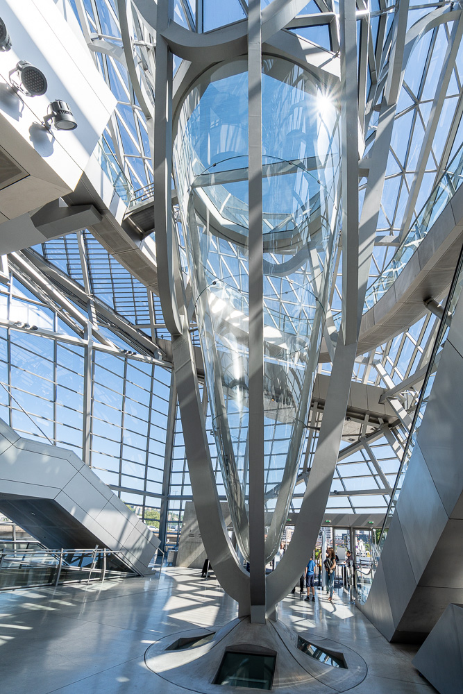 Dort steht das architektonische Highlight der Stadt für all diejenigen, die der modernen Bauweise zugeneigt sind. Also zum Beispiel für mich 😎. Das Musée des Confluences bildet inhaltlich nichts weniger als alles Wissenswerte zur Geschichte der Menschheit ab. Doch der Inhalt nimmt im Vergleich zur Hülle und Eingangshalle erstaunlich wenig Raum ein. Schwarze Boxen ohne Tageslicht dienen als Ausstellungsräume. Die schaue ich mir zwar halbherzig an, doch mein Hauptaugenmerk liegt auf dem phänomenalen Gebäude. Passend dazu führen auch eine moderne Brücke und die schicke Straßenbahn direkt zu ihm hin.