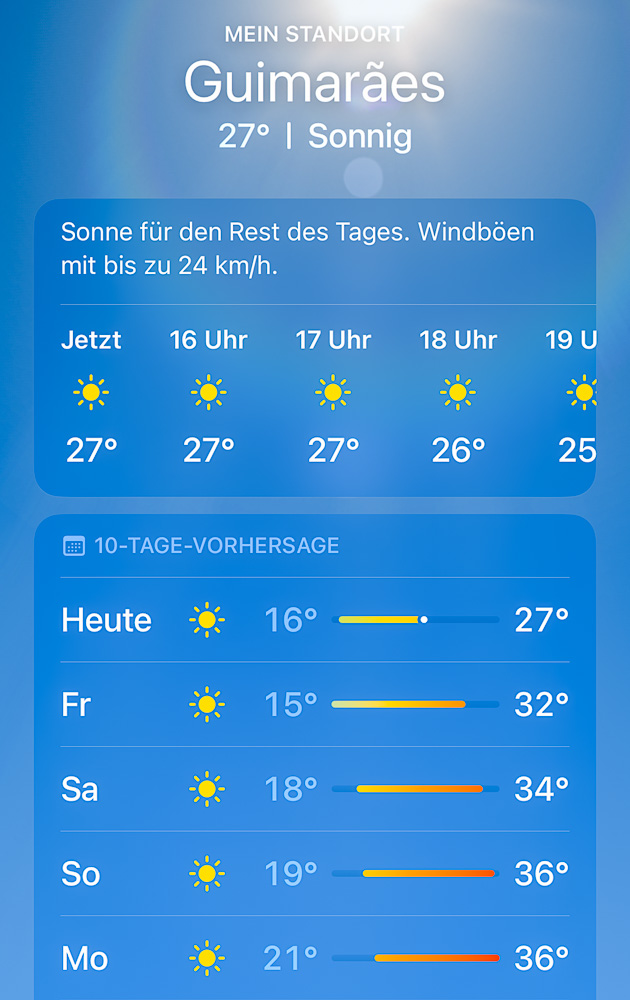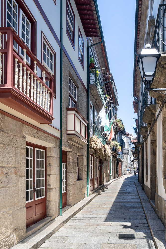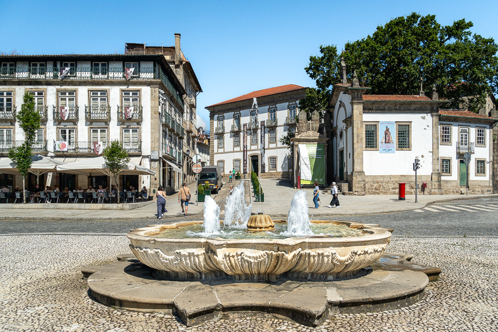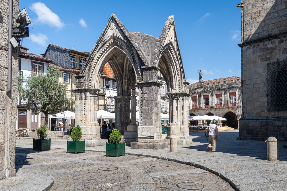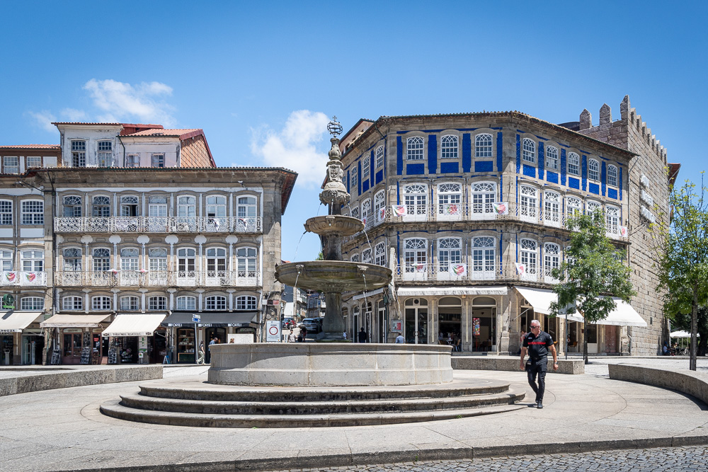 Schon nach kurzer Zeit kann ich bestätigen, dass Guimarães wirklich einen Besuch lohnt. Was für ein schönes Städtchen! Das einzige, was mich spontan ein wenig stört, ist, dass die hiesige Gastronomie zumindest optisch etwas arg raumgreifend agiert. Denn fast jeder Quadratzentimeter auf den lauschigen Plätzen in der historischen Altstadt ist von Tischen, Stühlen und Sonnenschirmen belegt, sodass die Plätze für sich genommen nicht mehr so richtig wirken können. Doch das ist wahrlich Jammern auf hohem Niveau 😅.