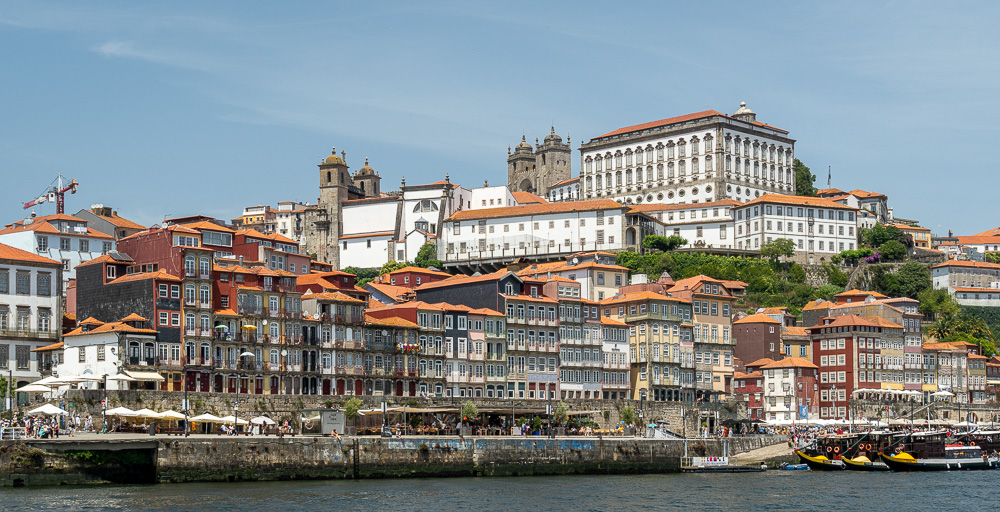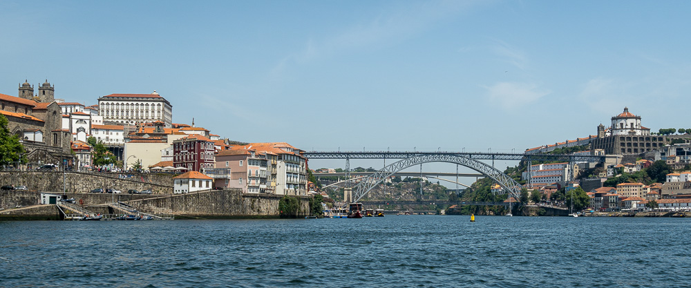 Wieder zurück in Porto, kaufe ich spontan ein Ticket für eine der zahlreich angebotenen Bootstouren auf dem Douro. 50 Minuten geht es unter den sechs zentralen Brücken der Stadt entlang. Das Boot ist nur mäßig besetzt, und so kann ich es mir in meiner Reihe richtig gemütlich machen. Hach, schön! Jede Stadt sieht vom Wasser aus nochmal ganz anders aus. Perspektiven wechseln kann nie schaden. Und ein kühles Lüftchen geht auch noch.