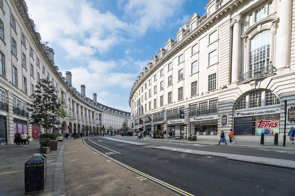 Wir laufen die edle Regent Street hinunter …