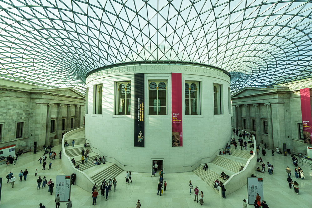 Zentrales Herzstück des vor akademischen Einrichtungen, Buchhandlungen, Cafés und eleganten georgianischen Stadthäusern strotzenden Bloomsbury ist das British Museum. Auch wenn man sich nicht im Detail für die dort gezeigten Ausstellungen interessiert, so empfiehlt es sich doch, sich wenigstens die bemerkenswerte Architektur zu Gemüte zu führen. Die moderne Eingangshalle trägt eindeutig die Handschrift von Sir Norman Foster.