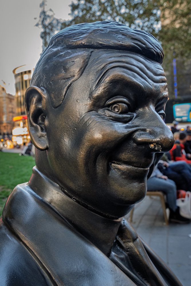 Zum Abschluss des heutigen Tages laufen wir in Richtung Leicester Square, dem Herz der Stadt, zumindest für die Einheimischen. Dort ist an diesem sonnigen Sonntagnachmittag noch eine Menge los. Und mittendrin sitzt stoisch die einschlägige Prominenz.