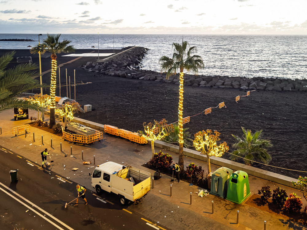 Sonntag, der Morgen nach der großen Party. Versonnen schaue ich von meinem Balkon aus zu, wie der Tag über dem Meer anbricht. Dann fällt mein Blick schräg nach links unten auf die Straße. Die Bühne, die dort gestern stand, wurde noch mitten in der Nacht direkt nach dem Konzert abgebaut. Eben war der Aufräum- und Fegetrupp da. Und nun, kurz vor acht, ist alles blitzeblank, als ob nie was gewesen wäre. Dit is Spanien! In Berlin brauchen wir für sowas Tage und Wochen.