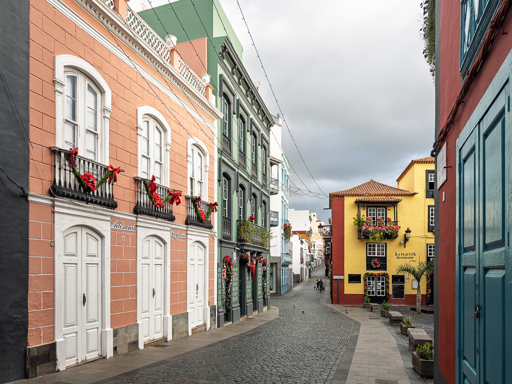 Hach, ist das schön, mich in den Gassen zu verlieren und in den Tag hinein zu leben! Und recht schnell bin ich bereit, mich festzulegen: Santa Cruz de La Palma mit seinen rund 16.000 Einwohnern ist die Schönste unter den Hauptstädten der Kanarischen Inseln. Das Stadtzentrum steht unter Denkmalschutz, doch museal wirkt hier gar nichts. Kopfsteinpflaster, schicke Bürgerhäuser, reich und bunt bepflanzte Balkone, lauschige Plätze unter Palmen, eine gemütliche Atmosphäre und eine gute Mischung aus Lädchen, Gastronomie und Wohnhäusern passen perfekt zur großteils aus Fußgängerzonen bestehenden Altstadt. Ihr wollt noch einen Fotonachschlag? Bitteschön!