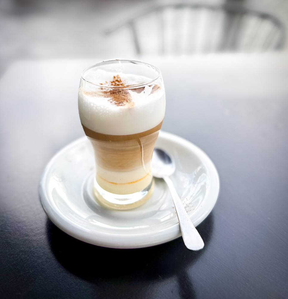 Zeit für ein Frühstück. Ich kröne den kulinarischen Genuss mit einem Barraquito con todo, also mit Likör. Barra was? Schaut gerne hier.