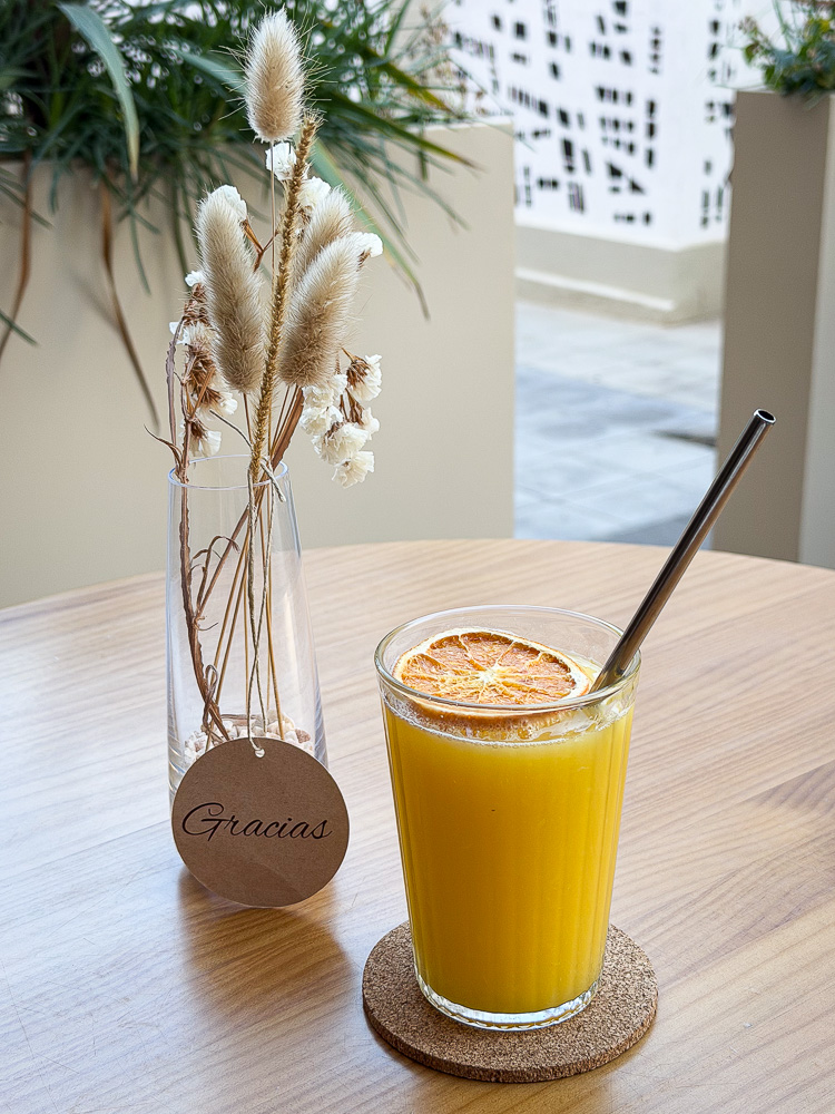 Direkt hinter der Kirche lockt mich das Café Belvedere mit charmanter Lage und tollem Ambiente in seine Fänge. Da ich meine Ladung Koffein schon intus habe, bestelle ich einen frisch gepressten Orangensaft.