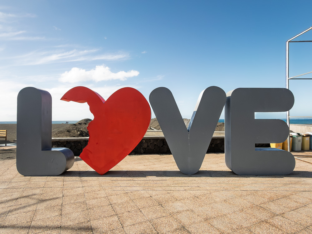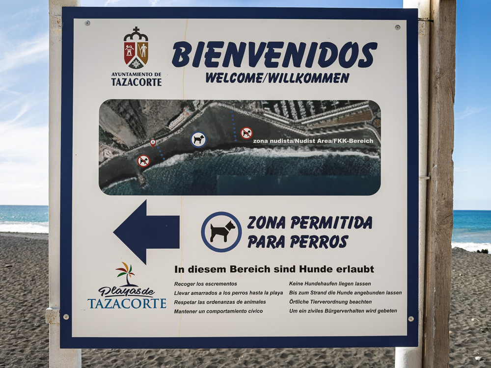 Unten am Wasser angekommen, empfängt mich Puerto de Tazacorte mit angeknabberter Liebe und der Bitte um ziviles Bürgerverhalten. Sollte ich hinkriegen! Zumal ich ohne vierbeinige Begleitung unterwegs bin 😅.